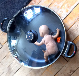 What are these things that are being left behind? A doll trapped and left to suffocate in my favorite cookware? . . . Some "Cholo" figures (this is a real toy, check out Homies) dropped into someone's rejected milk? . . . The last of some sad bar of Irish Spring fusing with what was left of my farmer's market oatmeal soap that I was suckered into buying? . . . . and is that a chest hair attached to it?
